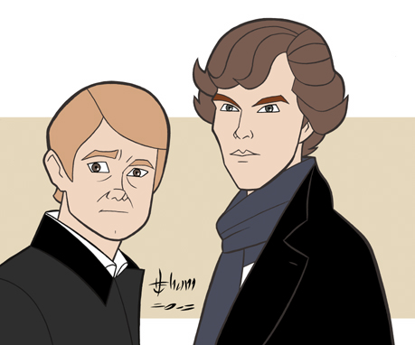 Benedict Cumberbatch and Martin Freeman as Sherlock Holmes and Dr. Watson